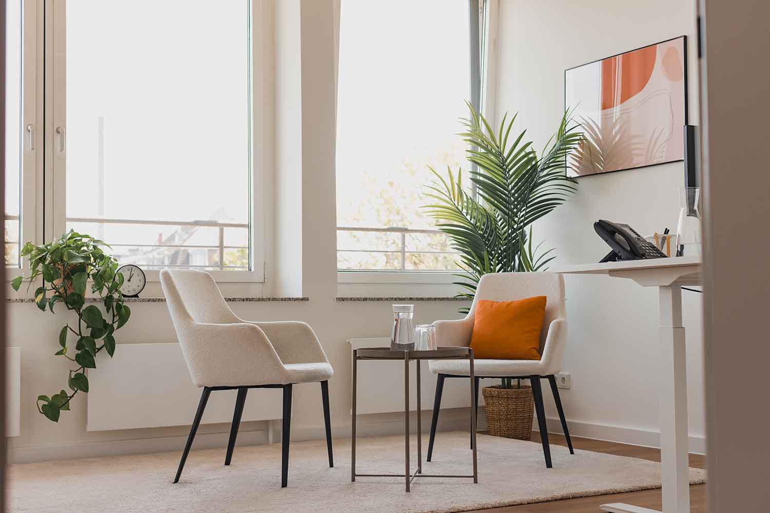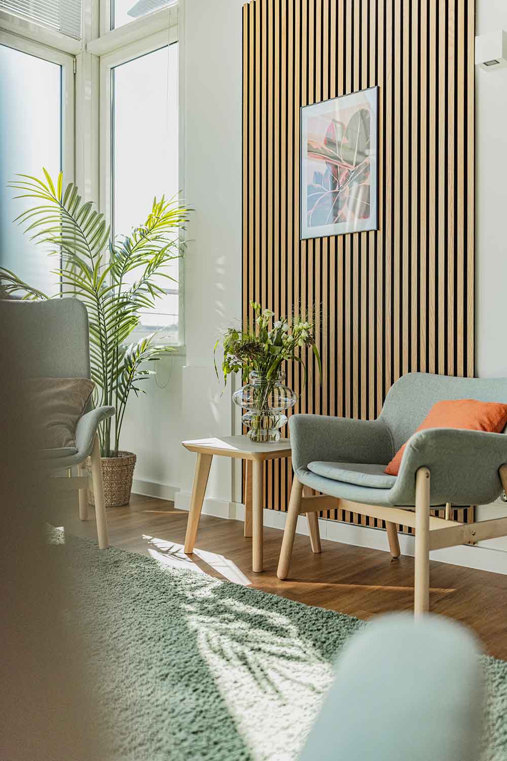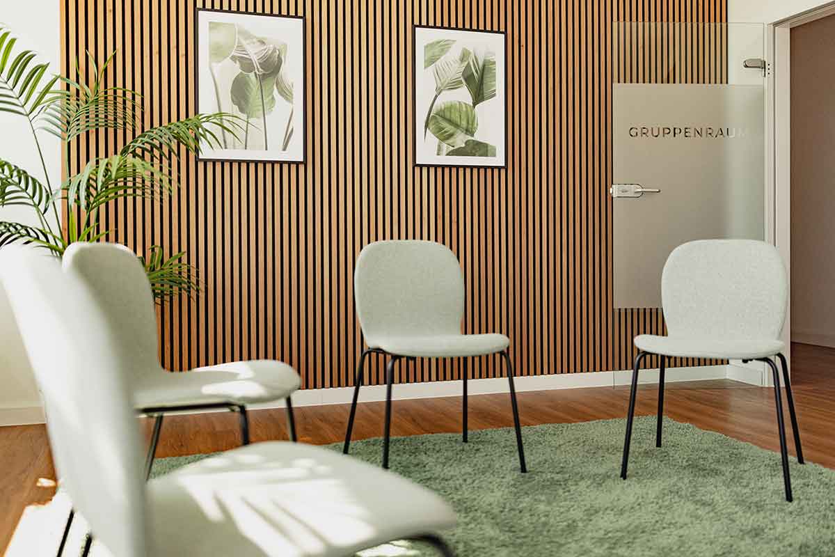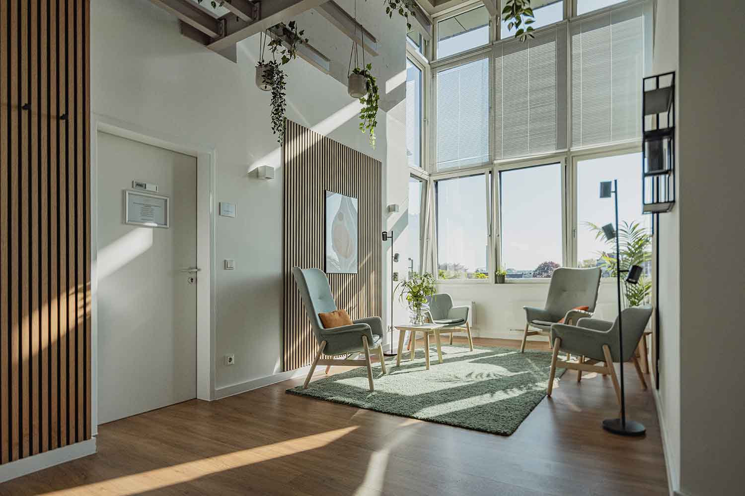 Werfen Sie einen Blick in unsere modern gestalteten Räumlichkeiten – mit warmen Farben, viel Tageslicht und liebevollen Details schaffen wir eine Atmosphäre, in der Sie sich sicher und geborgen fühlen können. Unsere Impressionen geben Ihnen einen ersten Eindruck davon, was Sie bei uns erwartet: ein Ort der Ruhe, Klarheit und inneren Balance. Die Anbindung unserer Ambulanz überzeugt zudem durch die grüne und zentrale Lage in Düsseldorf Oberkassel in unmittelbarer Rheinnähe.